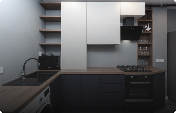 Мы специализируемся на производстве кухонь, шкафов и гардеробных. А также изготавливаем: столы и стулья, прихожие, тумбы и комоды, двери и лестницы.